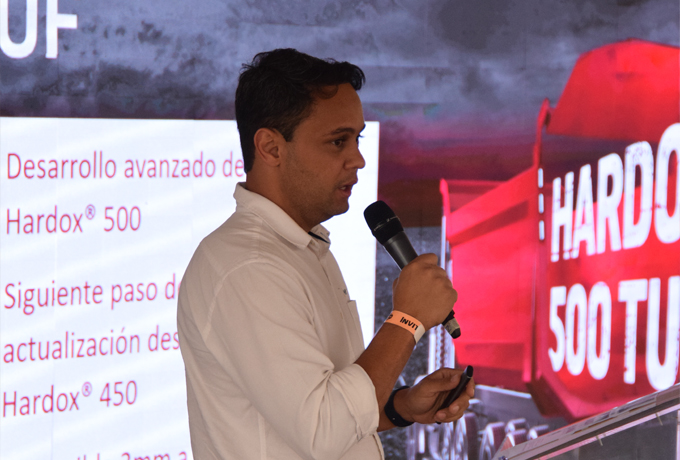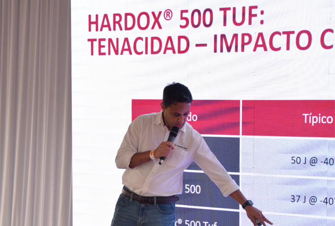 Desde 1974, Hardox® se ha mantenido como la chapa de desgaste número 1 en el mundo, y la última adición, el Hardox® 500 Tuf, refuerza aún más esta reputación. Durante la presentación, el Ing. Ribeiro destacó las características distintivas de este acero avanzado, disponible en espesores que van desde 3mm hasta 25.4mm.
