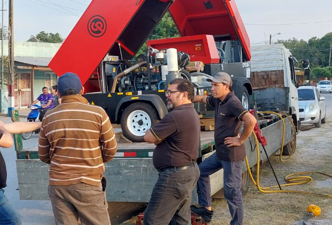 Nuestro equipo comercial mostrando in-situ la operación en condiciones reales y las ventajas de utilizar nuestros Compresores de aire Chicago Pneumatic.