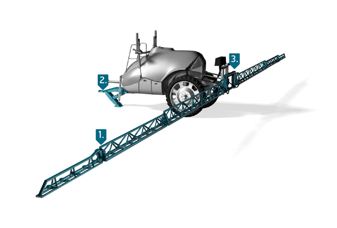 La longitud total de una lanza pulverizadora puede alcanzar mucho más de 40 metros. Esto impone demandas en el peso y la rigidez del equipo para mantener la lanza estable, al tiempo que mantiene la distancia constante al suelo.