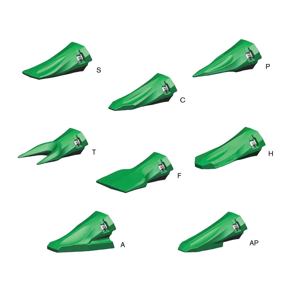 - Dientes: Fabricado en acero fundido aleado al cromo y al silicio con tratamientos térmicos. Los dientes se utilizan para mover tierra en motoniveladoras, cargadoras, topadoras, retro excavadoras, traíllas y excavadoras hidráulicas.