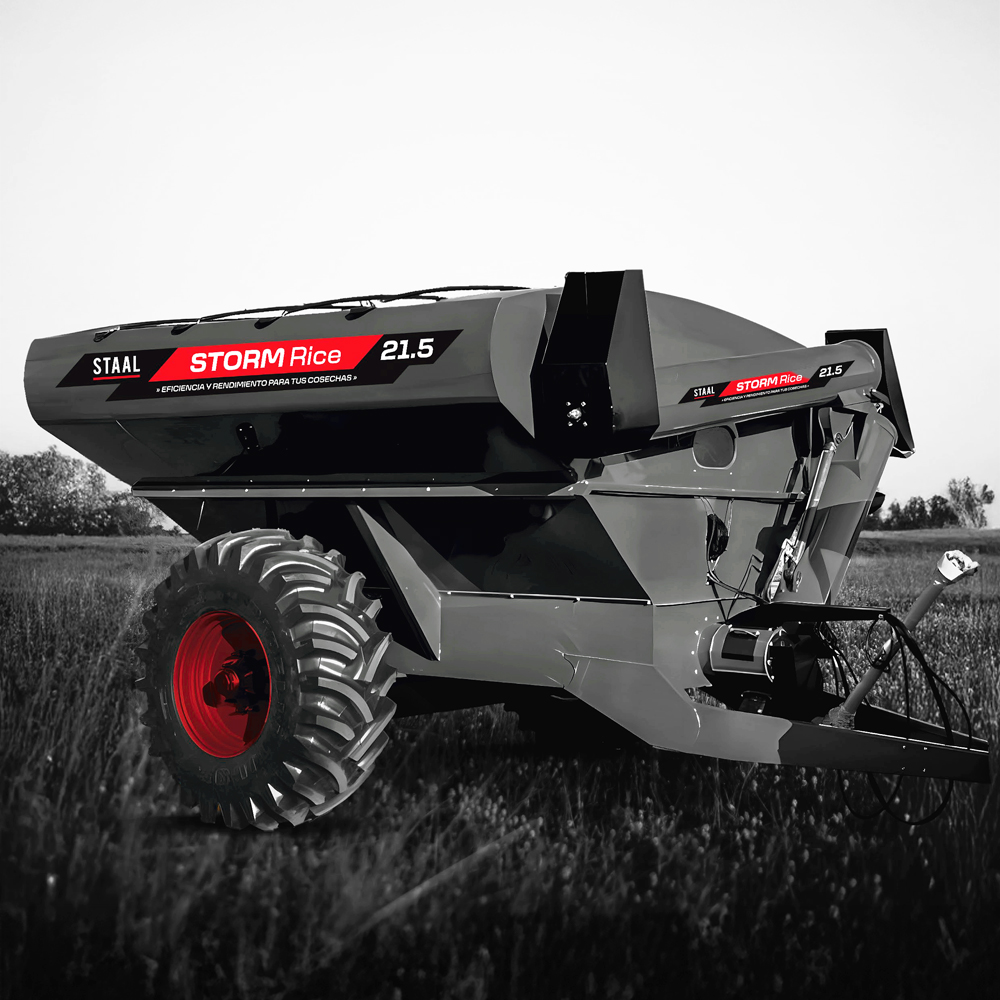 As carretas graneleiras STORM Rice de STAAL, equipadas com tubos frontais, são a solução ideal para trabalhar em conjunto com as colheitadeiras, facilitando a colheita ágil e segura de cereais a granel, como arroz, soja, trigo e milho. Oferecemos 4 modelos com capacidades que variam de 21.500 a 43.000 litros, disponíveis com tubos de 480 e 530 mm, e configurações de um ou dois eixos.