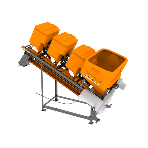 - Boquilla de salida bifurcada, garantizando el tratamiento continuo sin paradas para el cambio de las sacas. Cuenta con una palanca selectora que garantiza el uso de una u otra salida.