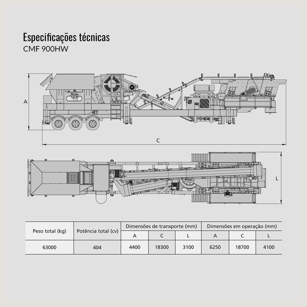 Para la etapa primaria, los equipos aceptan trituradoras desde el modelo JC 900 hasta el JC 1200. En la etapa secundaria, pueden incorporar trituradoras CC 900 a CC 1200, en sus versiones XP o XT, asegurando robustez, eficiencia energética y larga vida útil.