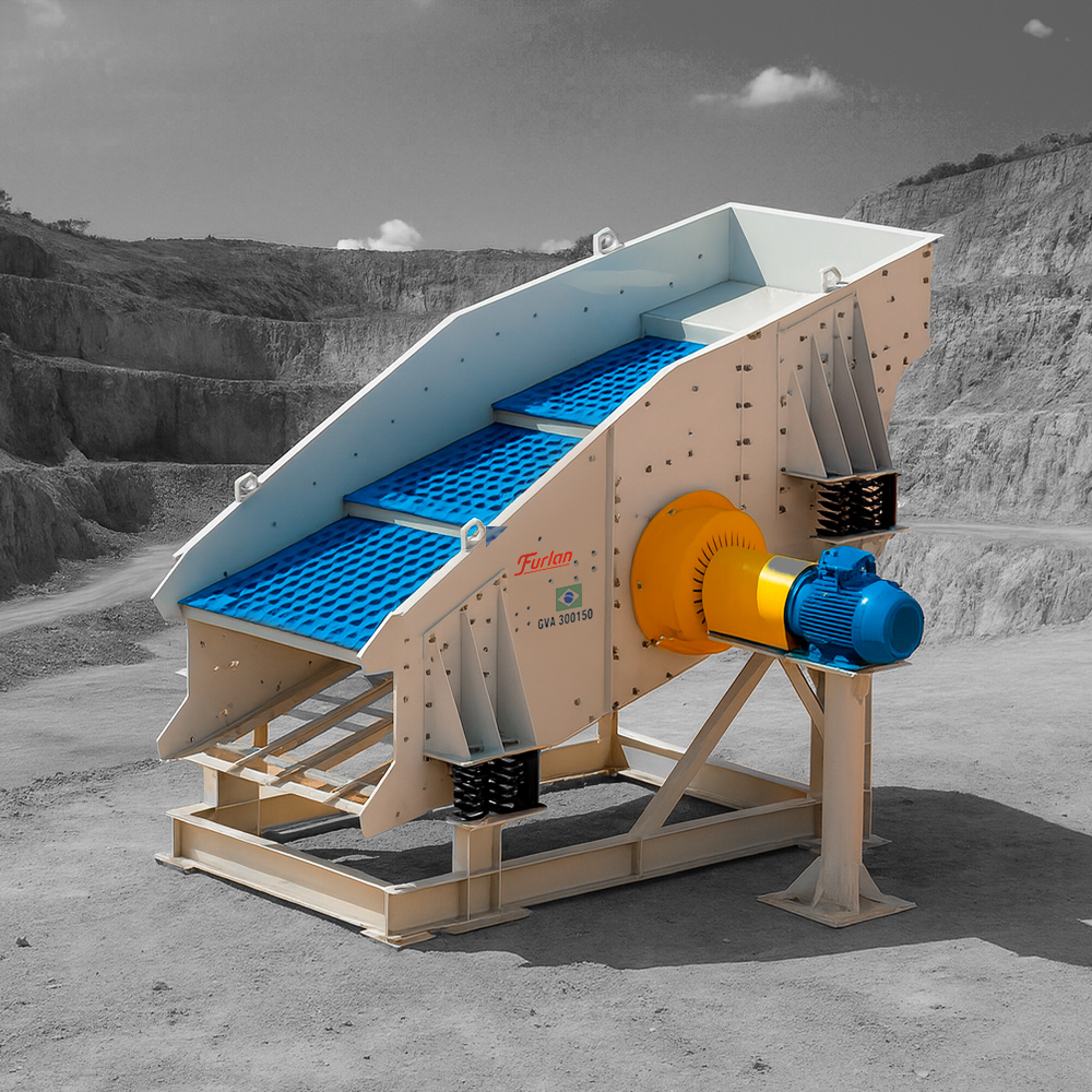 Os scalpers FURLAN, também conhecidos como peneiras de escalpe, são utilizados para classificar as rochas em duas ou três frações antes da britagem primária ou secundária, assegurando uma alimentação eficiente e o funcionamento ideal dos britadores. Esses equipamentos são amplamente utilizados antes da alimentação de britadores quando há grande quantidade de finos e terra (limpeza ou pré-seleção).